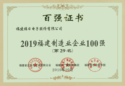 福日電子入選2019福建制造業企業100強