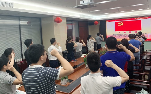 “我志愿加入中國共產黨,擁護黨的綱領……” 黨員同志在支部書記的帶領下重溫入黨誓詞。