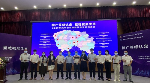 20201027日,2020東莞市職業技能等級認定推進會在東莞市舉行,來自該市第二批共12家擬開展技能等級認定企業的相關人員進行集中培訓學習,為更好地推廣等級認定、塑造技能生態夯實基礎。福日電子二級控股子公司廣東以諾通訊有限公司技師工作站相關負責人受邀參加。